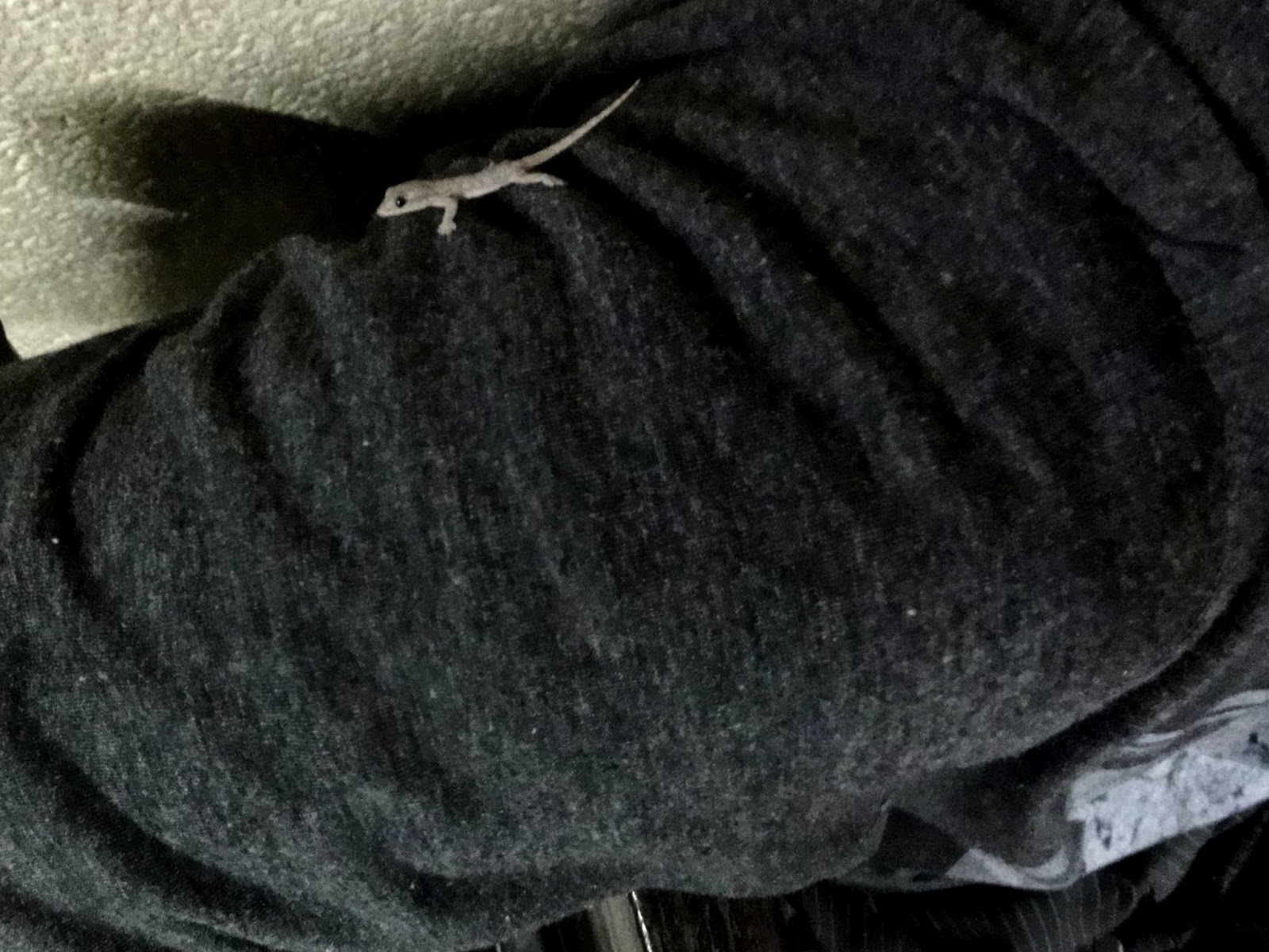 As I’m sitting there reading, huge bugs of various sorts keep falling off the ceiling and jumping off the walls onto me. I wish I took a photo of it, but I saw something that was part enormous cricket, part demon bug, all evil, and I probably would have shat my pants had it landed on me. This little guy landed on me though :3