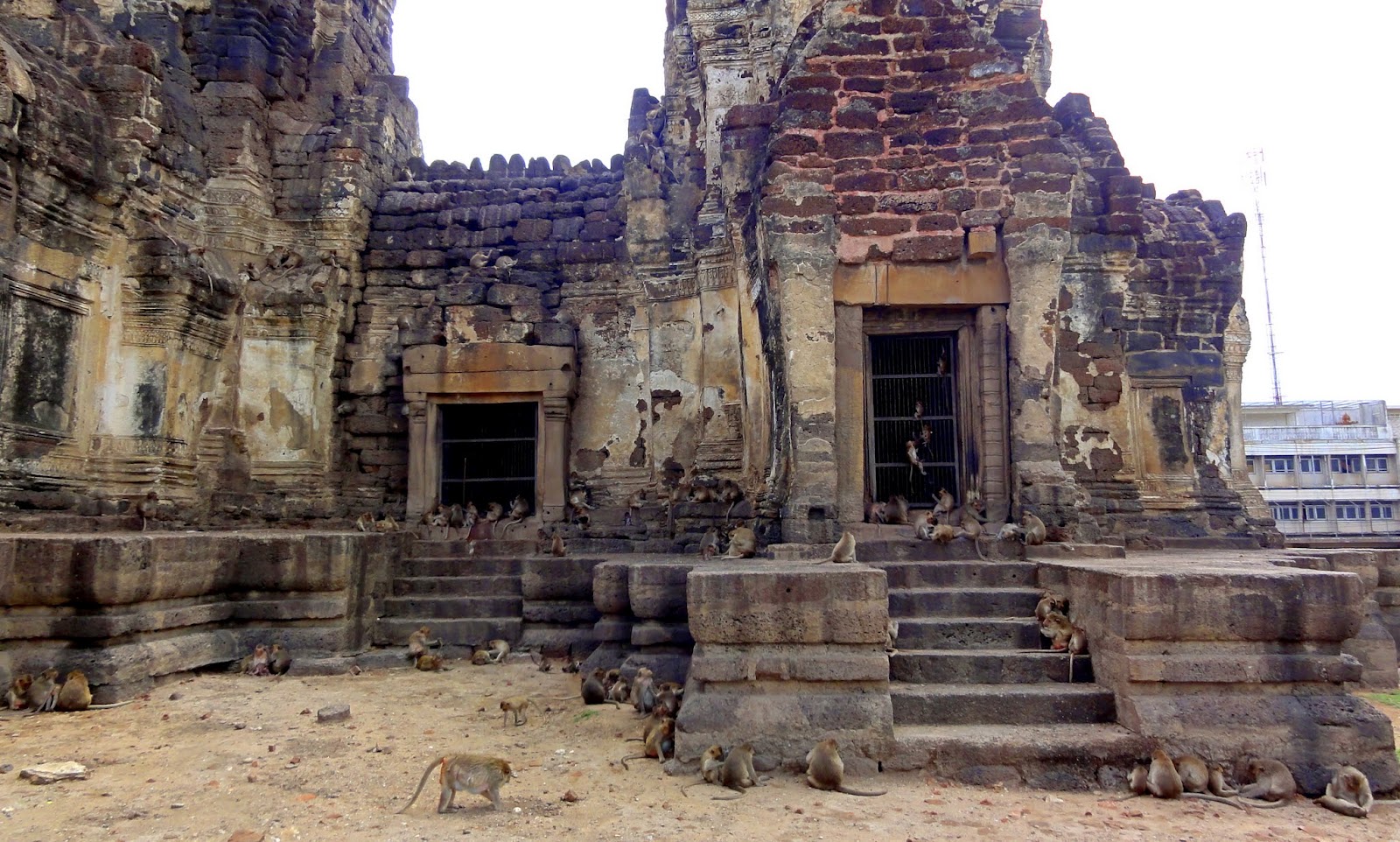 There were monkeys all over the streets surrounding the area of the Phra Prang Sam Yot temple.