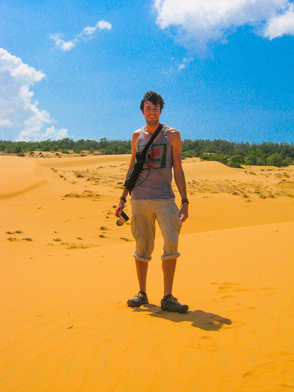 Yesterday was the first day we went out and did some activities here in Mui Ne. We got up at a lazy 10am, had a lovely lazy morning shag, and I wandered downstairs about 11:30 to rent a bike. It cost $6 for the day and none of the locks on it seemed to work properly. Not even the ignition worked well. I asked the guy about a bike lock because I’d read that you need one for the white sand dunes as bike theft is a real problem. He showed me the steering lock. I said “no no no”, and mimed someone picking up the whole bike and walking off. Ahhhh! He goes to a drawer and instead of pulling out a little bike lock like I thought he would, he pulls out a serious length of chain and a padlock. Nice.