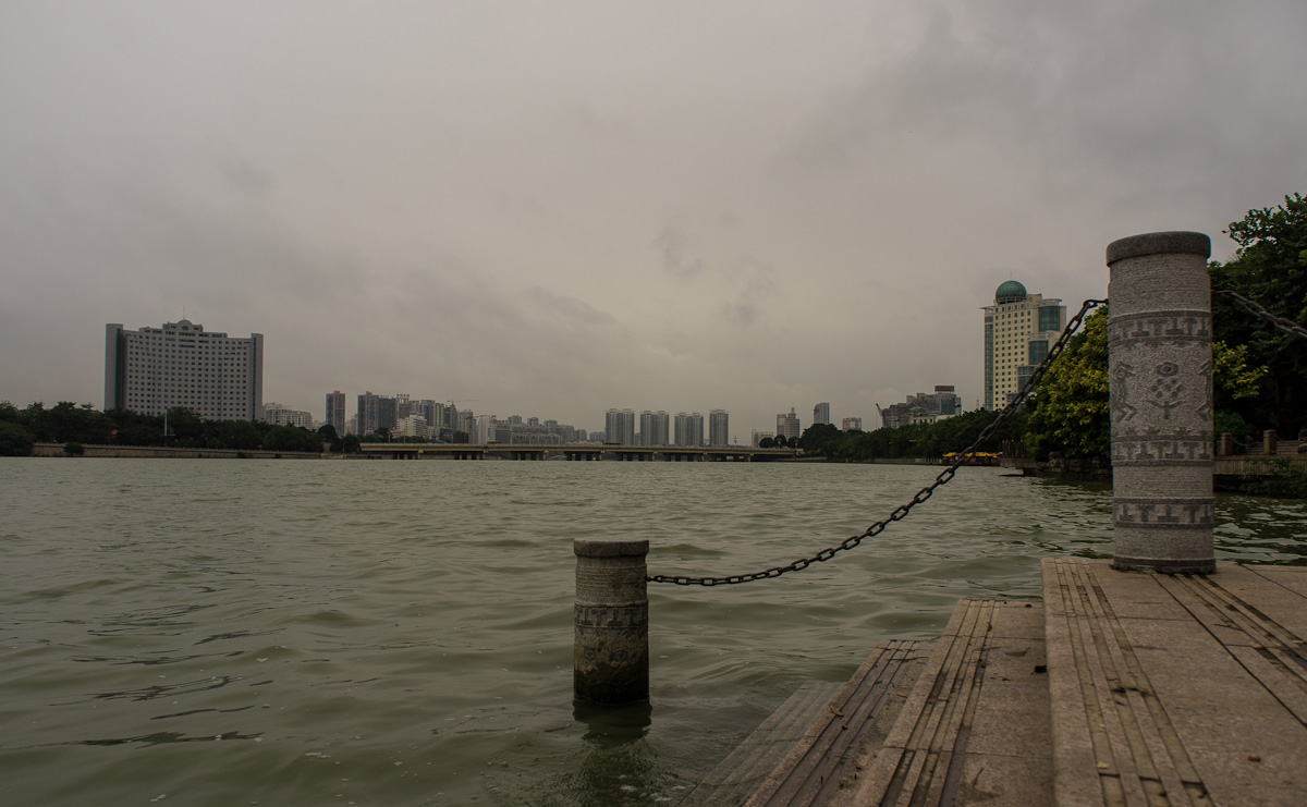 We continued on through the park down to the lake. Imagine a sky of the purest gray. Then a ring of gray apartment buildings as far as the eye can see, dotted with cranes building even more gray apartment buildings. Finally, reflect the whole lot in a brown lake awash with sudsy bubbles. Picturesque. There were even fish in the lake, you could see them jumping at intervals, no doubt trying their hardest to escape. We sat on the steps and chatted about life in general while the oily waves lapped at our feet.